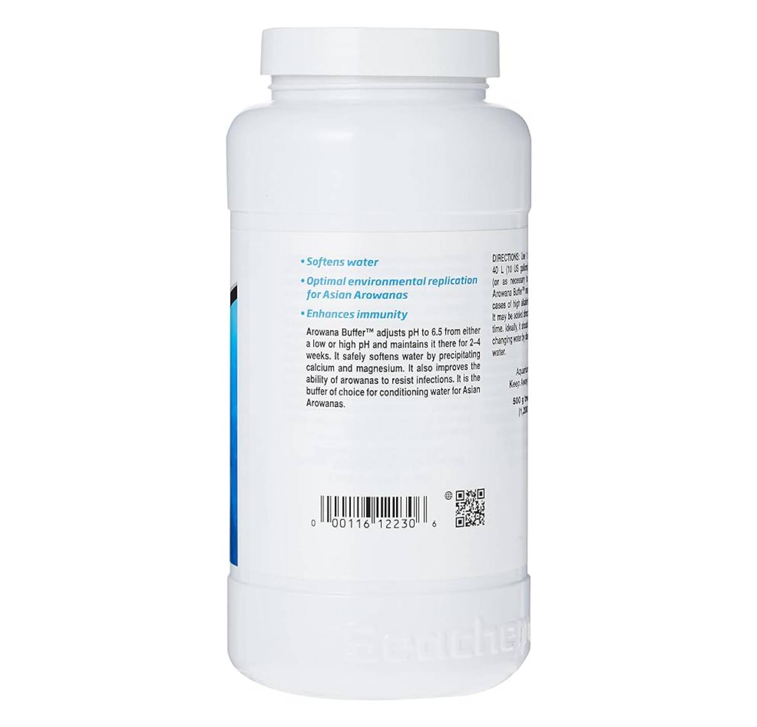 آروانا بافر (Arowana Buffer) PH آب را روی 6.6 تنظیم می کند و برای 2 الی 4 هفته روی این عدد نگه می دارد. این محصول آب را با ته نشین کردن کلسیم و منیزیم نرم تر می کند. همچنین سیستم ایمنی آرواناها را در برابر بیماری ها قوی تر می کند. بهترین بافر موجود برای آرواناهای آسیایی هم هست. این محصول باعث نرم شدن آب می شود و ایمنی آب را افزایش می دهد .